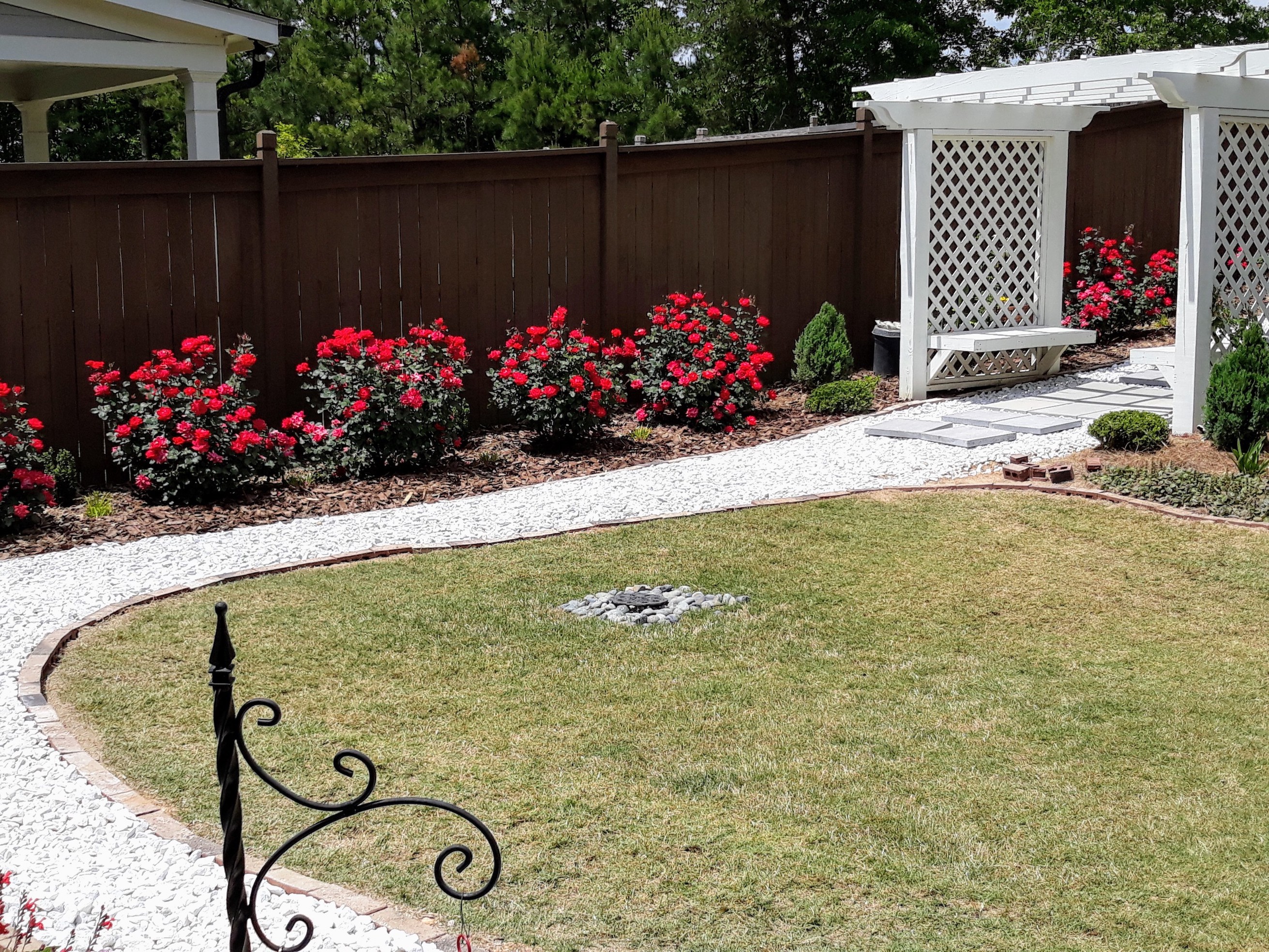 We heard from Inday B that they created two flower gardens, one in the back of the sunroom and in the front porch walkway. We also finished the sidewalk leading to the arbor and back gate. These we accomplished with the help of our two wonderful high school grandsons during early spring and summer. We hope you enjoy.